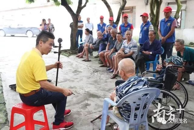 文化站每月都会组织文化公益活动。因为站里工作人员不多,文化义工团帮了很大的忙。团长郑永华告诉记者,义工团目前有300多名团员,上至五六十岁的老年人,下至10来岁的初中生,大家都乐于利用业务时间“送文化”、“种文化”。在茂名西站工作的团员陈辉,当天特意坐了1个多小时车来到敬老院,这已经是他5月份参加的第3场义工活动了。
