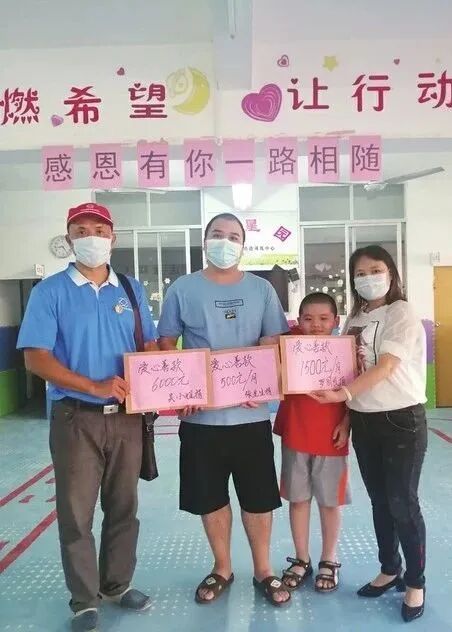 近日,志愿者吴女士为杨先生捐出善款6000元;志愿者张先生决定资助杨先生正在读中学的大女儿每月500元;高州“众星园”儿童潜能训练中心的罗园长继续每月资助1500元给杨先生患自闭症的幼子。