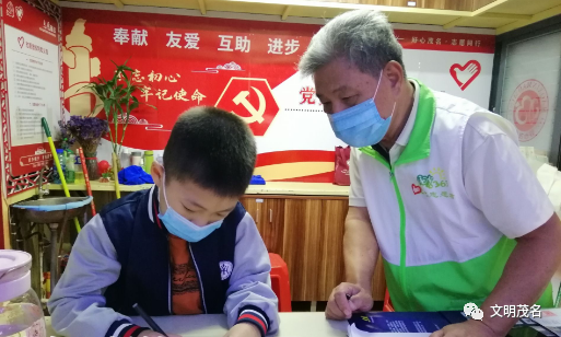 茂名阳光365志愿者组织未成年人志愿者在文化广场驿站开展志愿活动